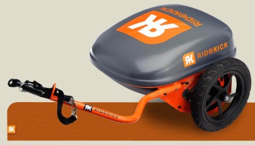 - The RidekickTM power trailer is a motorized bike trailer that hooks to almost any bicycle and propels the bike up to 19 miles per hour for a distance of about 12 miles and carries about 2 grocery bags of cargo. It is designed in Fort Collins and assembled in Northern Colorado.